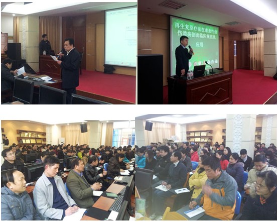 當日下午15時,南寧第七人民醫(yī)院門診綜合樓5樓會議室座無虛席,全院各科室除值班醫(yī)護人員外,共有100多人到會聆聽王主任的專題講座,該院業(yè)務(wù)副院長黃恒良全程主持了學術(shù)講座,會議中,王主任首先向與會的專家介紹了著名生命科學家、醫(yī)學家、人體再生復(fù)原科學的創(chuàng)立者、再生復(fù)原療法的發(fā)明人徐榮祥教授近年來在再生醫(yī)學領(lǐng)域所取得的重大實驗及臨床研究成果,而后王主任結(jié)合大量的臨床病例圖片及錄像資料,主要針對各類難愈性創(chuàng)傷、潰瘍創(chuàng)面的規(guī)范化處理方法與技巧、注意事項等進行了細致地講解,活動持續(xù)到下午17時才結(jié)束。