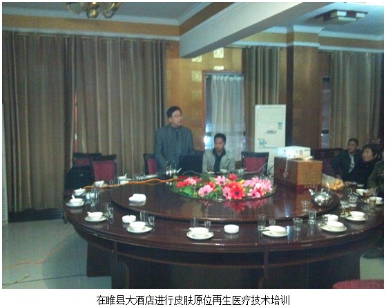 睢縣位于河南省商丘市西南角,是全國運動會水上比賽的場所,有著五湖相連風(fēng)景大世界美稱。2012年11月4號,中國中西醫(yī)結(jié)合學(xué)會燒傷專業(yè)委員會委員、北京美寶燒傷創(chuàng)瘍研究所臨床部專家陳全喜和河南技術(shù)推廣人賀杰鋒應(yīng)邀來到了睢縣公療醫(yī)院。燒傷科主任余  力及全科醫(yī)護人員在主任陳全喜的帶領(lǐng)下,認真學(xué)習(xí)“人體皮膚原位再生醫(yī)療技術(shù)”。