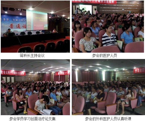 學(xué)術(shù)會(huì)議由岳池縣人民醫(yī)院科技科蔣科長(zhǎng)主持。參加會(huì)議的醫(yī)護(hù)人員的來(lái)自不同的科室,包括外一科、外二科還有婦產(chǎn)科及內(nèi)科等,總計(jì)約100人左右。首先付主任講解了原位再生醫(yī)療技術(shù)的原理,然后展示了原位再生醫(yī)療技術(shù)治療的成果,當(dāng)同學(xué)們看到再生技術(shù)神奇治療效果的圖片時(shí)都報(bào)以陣陣掌聲,培訓(xùn)班受到了醫(yī)護(hù)人員們的熱烈歡迎。會(huì)后大家都感覺(jué)受益匪淺,相信此次學(xué)習(xí)班的舉行一定會(huì)惠及岳池縣的萬(wàn)千民眾。