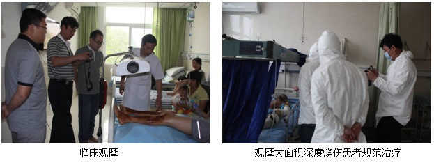 2012年5月16日湖南湖鐵醫(yī)院院長(zhǎng)譚煒、業(yè)務(wù)院長(zhǎng)戚小培及燒傷科楊自強(qiáng)主任一行來到四川成都,17日湖南譚煒院長(zhǎng)一行在四川省中西醫(yī)結(jié)合學(xué)會(huì)邱衛(wèi)東秘書的陪同下來到什邡燒傷醫(yī)院,什邡燒傷醫(yī)院程德躍院長(zhǎng)代表醫(yī)院熱情的接待了來自遠(yuǎn)方的朋友。在程德躍院長(zhǎng)陪同下大家來到病房,程院長(zhǎng)向大家介紹了患者接受再生技術(shù)治療的情況,同時(shí)毫無保留的將自己應(yīng)用再生技術(shù)的心得和體會(huì)告訴來賓。在臨床觀摩過程中來賓們對(duì)醫(yī)院制作精美的各種再生技術(shù)及疤痕治療展板產(chǎn)生了極大興趣,業(yè)務(wù)院長(zhǎng)戚小培還用相機(jī)一一記錄。為讓來賓更加深刻的了解再生技術(shù),程院長(zhǎng)還帶領(lǐng)大家來到ICU病房觀摩了95%燒傷患者的規(guī)范治療。