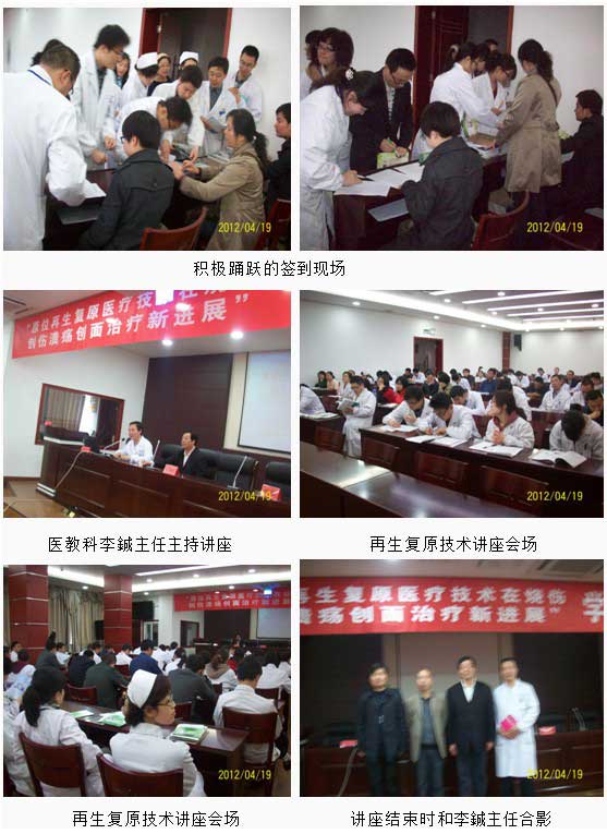 2012年4月19日中國中西醫(yī)結(jié)合學(xué)會(huì)燒傷專業(yè)委員會(huì)委員、北京美寶燒傷創(chuàng)瘍研究所臨床部研究員、燒傷創(chuàng)瘍專家杜福勤主任和學(xué)會(huì)駐江蘇省辦事處劉恒主任應(yīng)姜堰市中醫(yī)院醫(yī)教科李鋮科長(zhǎng)之邀,為姜堰市中醫(yī)院作“再生復(fù)原技術(shù)在燒傷創(chuàng)傷潰瘍創(chuàng)面臨床治療新進(jìn)展”講座,杜主任利用大量臨床實(shí)踐資料介紹了再生復(fù)原科學(xué)創(chuàng)立者,再生復(fù)原技術(shù)發(fā)明人徐榮祥教授研究創(chuàng)立和實(shí)踐的歷程,介紹了國內(nèi)外臨床實(shí)踐、推廣情況,重點(diǎn)講解了再生復(fù)原技術(shù)在燒傷創(chuàng)傷潰瘍創(chuàng)面的清創(chuàng)換藥技術(shù),介紹了再生復(fù)原技術(shù)專用產(chǎn)品MEBO燒傷膏、美寶創(chuàng)瘍貼、美寶疤痕軟膏的功能,臨床療效、臨床效果、注意事項(xiàng)及不良反應(yīng)。同時(shí)介紹了創(chuàng)瘍貼的產(chǎn)品特點(diǎn);1、特有的框架劑型,2、多重的生物功能,3、良好的止痛作用,4、可靠的臨床效果,5、獨(dú)有的專利產(chǎn)品。接著又介紹了美寶疤痕軟膏和微波超聲透入儀治療疤痕的資料,深受入會(huì)醫(yī)護(hù)人員的歡迎,起到了深入推廣再生復(fù)原技術(shù)地目的,造福姜堰市燒傷創(chuàng)瘍患者,福祉一方百姓。