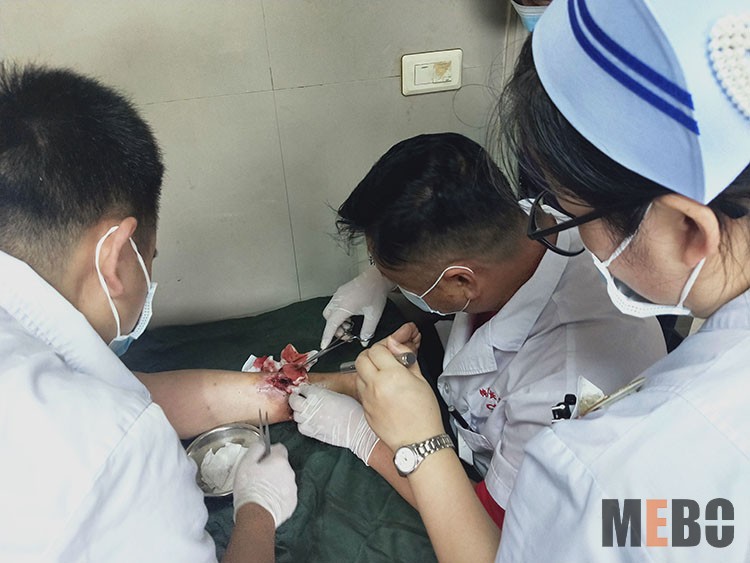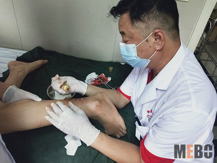 7月9日,中國中西醫(yī)結(jié)合學會燒傷專業(yè)委員會醫(yī)療部專家張強主任,應邀走訪枝江市人民醫(yī)院燒傷科,會診一例49歲男性燒傷患者,患者在6月20日于入院前一小時被鹽酸及其蒸汽燒傷雙手,雙前臂,雙小腿,雙足當時感到疼痛明顯,局部皮膚紅腫伴并有多個大小不等的水皰形成,水皰部分破損有滲出,創(chuàng)面紅潤,伴少許污染物,急診遂以“全身多處燒傷”收住燒傷科。張主任同管床醫(yī)生劉群峰和王帥共同為患者換藥,對現(xiàn)階段美寶再生醫(yī)療技術(shù)規(guī)范換藥呈現(xiàn)的理想療效給予了肯定,雙方交流了雙腳創(chuàng)面分泌物及壞死組織處理要點,后期各部位疤痕預防措施等。患者及家屬對專家親臨會診及醫(yī)生待患如親的工作態(tài)度再次表示了深深的感謝!