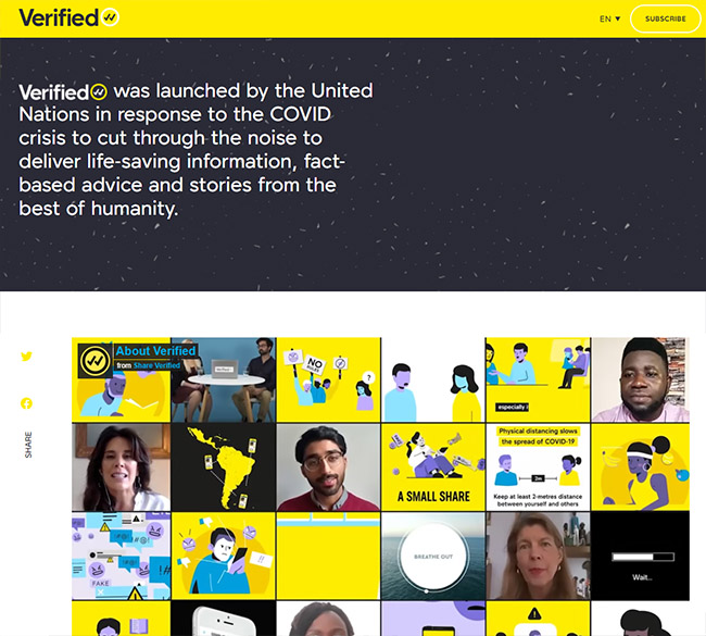 VERIFIED平臺(tái)是聯(lián)合國(guó)為應(yīng)對(duì)新冠肺炎疫情而發(fā)起,旨在改善獲得準(zhǔn)確信息的途徑。聯(lián)合國(guó)試圖組織一個(gè)由數(shù)百萬在線志愿者組成的網(wǎng)絡(luò),在龐雜的信息中提供有關(guān)新冠疫情的科學(xué)信息,并分享真實(shí)而美好的抗疫故事。