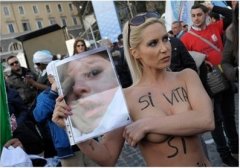 該決定頒布是在接連數(shù)周的媒體壓力要求出于同情給予治療的情形下出臺的,這一療法是由Brescia-based Stamina基金會開發(fā)的,且在過去六年中歷經(jīng)數(shù)次禁止?,F(xiàn)在,病人在呼吁將這個治療普及到所有身患無法治愈疾病的病人上。數(shù)百人于3月23日在羅馬舉行抗議,包括一名身涂“pro-Stamina”支持標(biāo)語的裸體婦女(下圖)。