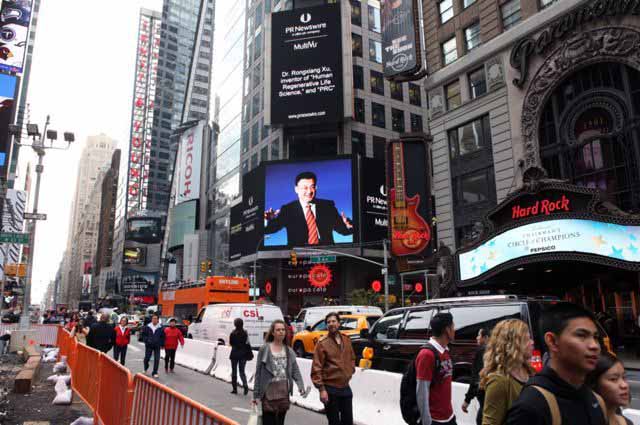 昨天,路透社第一時間發(fā)布了徐榮教授道出起訴諾貝爾獎委員會原因的新聞,同時在紐約時代廣場的新聞大屏幕上刊出徐榮祥教授的另一幅照片,稱徐榮祥是人體再生復(fù)原科學(xué)和PRC細(xì)胞發(fā)明人。