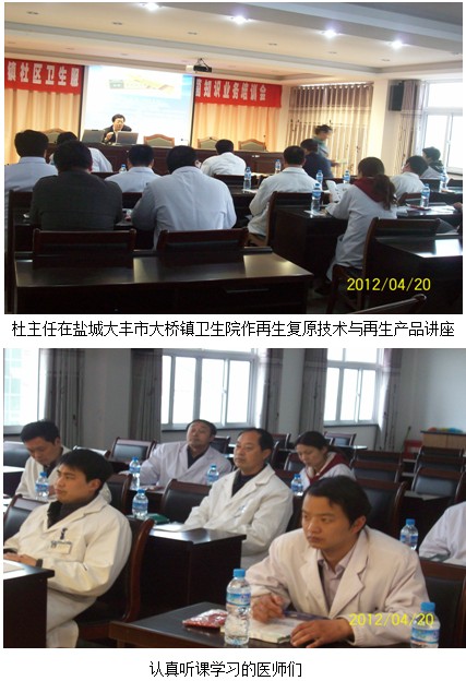 2012年4月20日中國(guó)中西醫(yī)結(jié)合學(xué)會(huì)燒傷專業(yè)委員會(huì)委員、北京美寶燒傷創(chuàng)瘍研究所臨床部主任、燒傷創(chuàng)瘍專家杜福勤與江蘇省區(qū)劉恒主任驅(qū)車100余公里從姜堰趕赴鹽城大豐市大橋鎮(zhèn)衛(wèi)生院,舉辦再生復(fù)原技術(shù)學(xué)術(shù)講座,杜主任以“皮膚原位再生復(fù)原技術(shù)與再生產(chǎn)品”為題為大豐市大橋鎮(zhèn)衛(wèi)生院全體職工舉辦了再生復(fù)原技術(shù)講座,該醫(yī)院楊院長(zhǎng)參加了再生復(fù)原技術(shù)講座學(xué)習(xí),杜主任通俗易懂的進(jìn)行了演講,講解了再生復(fù)原技術(shù)的基礎(chǔ)理論和美寶創(chuàng)瘍貼與美寶疤痕軟膏的臨床應(yīng)用方法、臨床功能、臨床療效及愈后效果。介紹了美寶創(chuàng)瘍貼的產(chǎn)品特點(diǎn);臨床注意事項(xiàng)和不良反應(yīng)。深受參加學(xué)習(xí)的醫(yī)護(hù)人員歡迎,為深入基層推廣奠定了良好基礎(chǔ),達(dá)到了基層醫(yī)療單位深入推廣地目的。