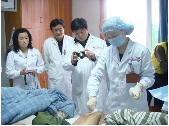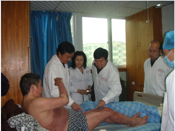 作為中國(guó)革命圣地最大三級(jí)甲等綜合性醫(yī)院的延安大學(xué)附屬醫(yī)院,為更好的開展再生醫(yī)療技術(shù)為延安地區(qū)患者服務(wù),向中國(guó)中西醫(yī)結(jié)合學(xué)會(huì)燒傷專業(yè)委員會(huì)申請(qǐng)到四川省雅安市人民醫(yī)院參觀學(xué)習(xí)再生醫(yī)療技術(shù)在臨床的應(yīng)用。2009年11月6日四川省中西醫(yī)結(jié)合學(xué)會(huì)燒傷專委會(huì)按總會(huì)的指示由邱衛(wèi)東秘書陪同延安大學(xué)附屬醫(yī)院燒傷科薛宏斌主任一行六人,穿過深秋清晨的薄霧到達(dá)“秀雅寧安”的雅安城。