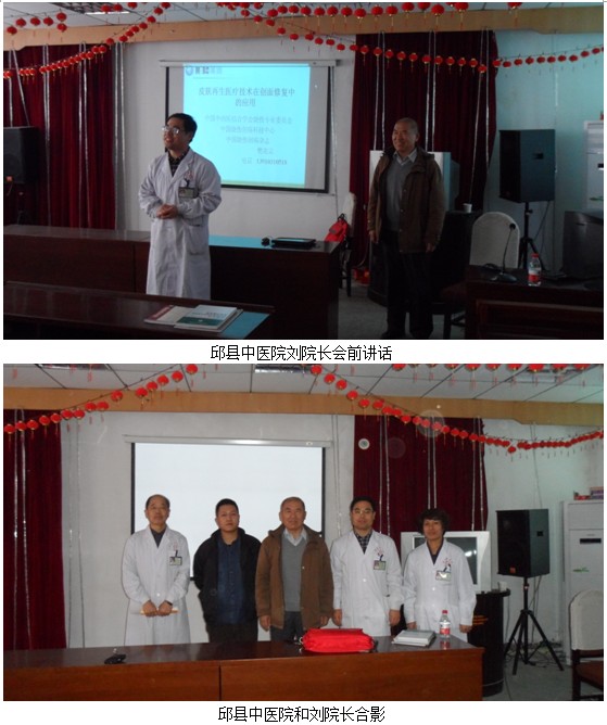 11月20日,邯鄲邱縣中醫(yī)院之行:邱縣中醫(yī)院的劉院長負(fù)責(zé)內(nèi)科,在治療壓瘡、糖尿病潰瘍上應(yīng)用再生技術(shù)多年,對MEBO技術(shù)非常熟悉,對再生技術(shù)的效果非??隙?。會上劉院長認(rèn)真聽著樊教授對每一個病例的講解,每到關(guān)鍵之處便會記上幾筆,會后醫(yī)生們就一些臨床難題和樊教授進(jìn)行了交流。