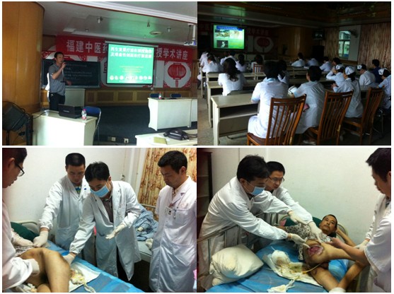 結(jié)束了泰寧兩家醫(yī)院的講座,2012年5月10日中國中西醫(yī)結(jié)合學(xué)會(huì)燒傷專業(yè)委員會(huì)常委兼秘書、中國燒傷創(chuàng)瘍雜志副總編輯、北京美寶燒傷創(chuàng)瘍研究所副所長(zhǎng)、臨床部主任王洪生研究員馬不停蹄地趕往福建省將樂縣,下午三點(diǎn)半在該將樂縣中醫(yī)院六樓會(huì)議室為該院的外科、骨科、五官科、皮膚科等科室的醫(yī)生和部分護(hù)理  部的人員共50余人進(jìn)行了“再生復(fù)原療法在燒傷及難愈性創(chuàng)瘍創(chuàng)面治療新進(jìn)展”的學(xué)術(shù)講座。
