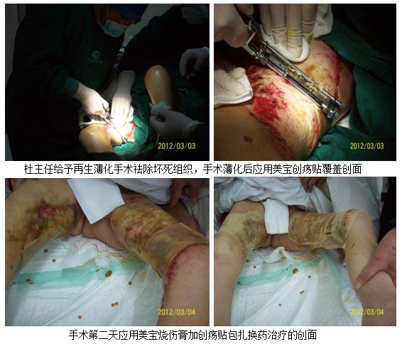 2011年6月,中國中西醫(yī)結(jié)合學(xué)會(huì)燒傷專業(yè)委員會(huì)技術(shù)推廣專家、北京美寶燒傷創(chuàng)瘍研究所臨床部主任杜福勤和學(xué)會(huì)駐安徽辦事處吳崇巍同志多次走訪皖北煤電總醫(yī)院燒傷整形科。繼2011年7月始,杜主任先后兩次近20天去皖北總醫(yī)院示范推廣再生復(fù)原技術(shù)治療燒傷、創(chuàng)瘍患者,經(jīng)過再生復(fù)原技術(shù)的治療,獲得了良好效果,取得了患者的信任。2011年9月,中國中西醫(yī)結(jié)合學(xué)會(huì)燒傷專業(yè)委員會(huì)燒傷創(chuàng)瘍專家陳永翀教授去皖北總醫(yī)院幫助搶救大面積燒傷患者取得圓滿成功,獲得了院領(lǐng)導(dǎo)及燒傷科的認(rèn)可和贊同,收到了良好臨床效果。