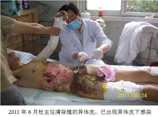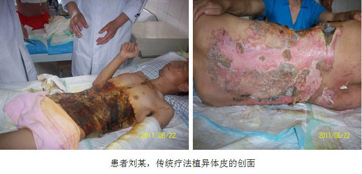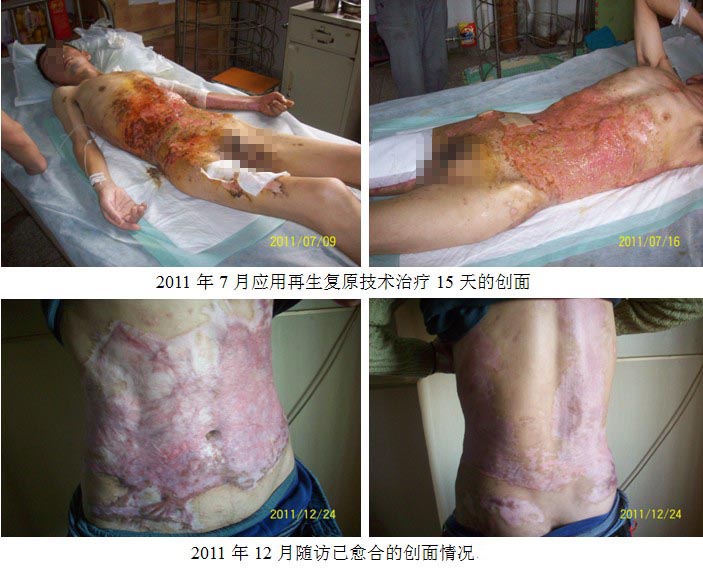 患者劉某回想起住院的那段日子,“經(jīng)濟困難壓得我們夫妻倆簡直喘不過氣來,幾次都想尋短見一走了之,傳統(tǒng)技術植皮已花掉近10萬元,創(chuàng)面又出現(xiàn)植過異體皮的下面感染,在這樣的情況下,北京專家杜福勤主任徹底清除了已感染的異體皮,應用再生復原技術和MEBO濕潤燒傷膏治療為我精心治療,杜主任每天給我清創(chuàng)換藥,創(chuàng)面一天天日漸好轉,一周后創(chuàng)面明顯縮小。當時杜主任有事去其它地方治療病人,走后第二天,醫(yī)院又將治療方法改成了傳統(tǒng)治療方法,朝創(chuàng)面上噴碘伏、用碘伏紗布覆蓋創(chuàng)面,疼得我簡直難以忍受,盼著杜主任早日回來給我治療,在我電話的不斷催促下,三四天后杜主任回到皖北總院重新給我恢復了再生復原技術治療,我真的是非常幸運。從應用再生復原技術治療到全部創(chuàng)面愈合總共費用一萬元左右,不論從經(jīng)濟上還是自身痛苦度上來講,我都是一個極大的受益者,感謝北京燒傷研究所的杜主任!感謝再生復原技術!感謝再生復原技術發(fā)明人徐教授!”