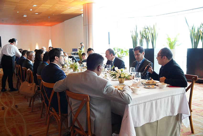 當(dāng)晚,在秘魯總統(tǒng)迪娜·博魯阿爾特的誠(chéng)摯邀請(qǐng)下,徐鵬主席再度出席國(guó)宴。這場(chǎng)宴會(huì)不僅是美食與文化的盛宴,更是國(guó)際政治與經(jīng)濟(jì)交流的舞臺(tái)。徐鵬主席與來(lái)自世界各地的國(guó)家領(lǐng)導(dǎo)人共聚一堂,展開(kāi)交流。