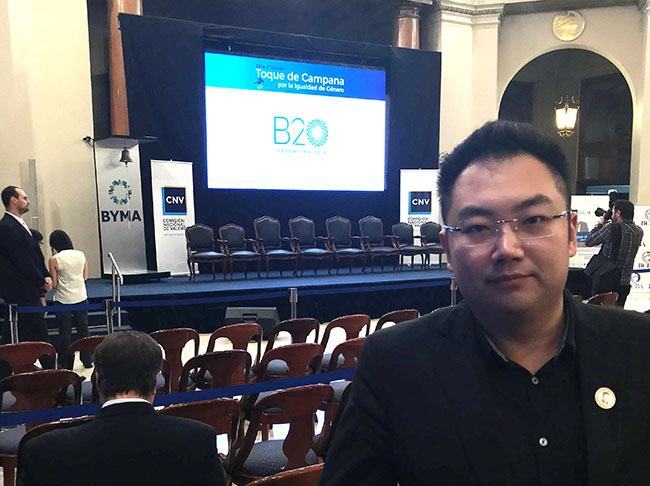 2018年3月7日上午,聯(lián)合國世界婦女節(jié)敲鐘儀式在阿根廷首都布宜諾斯艾利斯證交所舉行,美寶集團(tuán)總裁徐鵬應(yīng)邀出席本次活動。這次活動是由聯(lián)合國婦女組織(UN Women)和二十國集團(tuán)商業(yè)論壇(B20)主辦,在今年B20峰會主辦國阿根廷首都慶祝國際婦女節(jié),旨在借此提高對民間社會在促進(jìn)男女平等實(shí)現(xiàn)聯(lián)合國第五項(xiàng)可持續(xù)發(fā)展目標(biāo)中能起重要作用的認(rèn)識。
