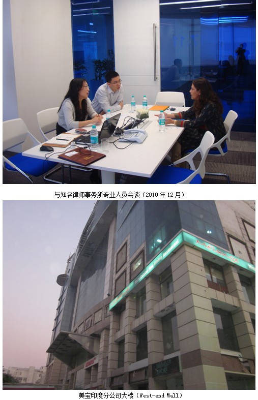 2010年下半年,國際市場集團市場部印度工作小組對印度外資投資政策、醫(yī)藥行業(yè)的特殊要求、公司組建細節(jié)與程序、公司運營、稅務、審計等進行了深入的研究和評估,并初步確定了美寶印度分公司的組建與運營初步計劃。經(jīng)董事局批準,2011年2月正式全面啟動美寶印度分公司項目,在我方的積極努力下,與NEERAJ CO簽訂了公司注冊代理協(xié)議并啟動了MEBO Pharmaceutical (India) Pvt Ltd 在印度新德里的全面注冊工作,公司目前已經(jīng)擁有營業(yè)執(zhí)照、自由進出口證書以及藥品經(jīng)營證書等相關證書,為全面運營打下了堅實基礎。