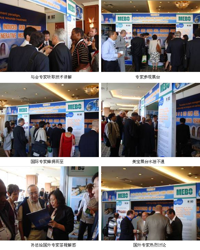 在大會(huì)主題發(fā)言后,各國專家紛紛來到美寶展臺(tái)參觀學(xué)習(xí)。大面積燒傷的完美愈合、各種久治難愈創(chuàng)面的成功救治,以及斷指再生等再生科學(xué)成就深深吸引并震撼了眾多與會(huì)代表,他們?nèi)琊囁瓶柿肆私馊梭w原位復(fù)原再生科學(xué)的奧秘,最多的時(shí)候,很多專家一擁而上瘋搶再生醫(yī)學(xué)的資料。同時(shí),我們也很高興地遇到很多已經(jīng)了解并使用過美寶的中東及東南亞的老朋友!很多已經(jīng)應(yīng)用過MEBO/MEBT的專家與美寶工作人員熱情交流,暢敘友情。表明近幾年的市場開發(fā)及醫(yī)療推廣取得了較好的成效。