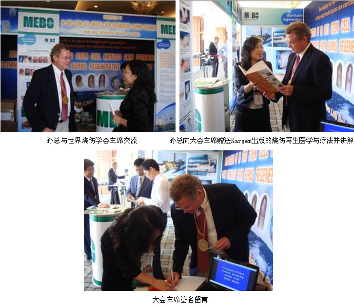 特別值得一提的是國際燒傷學(xué)會(huì)主席,美國的羅納德 霍普金斯主席也應(yīng)邀興致勃勃的趕到美寶的展位,與集團(tuán)國際市場總部總裁孫霞探討再生科學(xué)在燒傷領(lǐng)域的指導(dǎo)性作用。集團(tuán)總裁孫霞熱情洋溢的介紹了燒傷再生醫(yī)學(xué)在燒傷、體表潰瘍、不愈合慢性創(chuàng)面的臨床應(yīng)用,以及所取得的臨床治療效果,以及今后的多方面合作等,并代表再生科學(xué)的創(chuàng)始人徐榮祥教授正式邀請羅納德 霍普金斯主席訪問美寶。羅納德霍普金斯主席在交流后,興奮地說:“燒傷治療及再生的發(fā)展速度真讓人難以自信,美寶技術(shù)及濕潤燒傷膏很好的臨床治療效果。希望以后能夠有機(jī)會(huì)親自考察燒傷再生療法與美寶濕潤燒傷膏治療燒傷病人的情況。