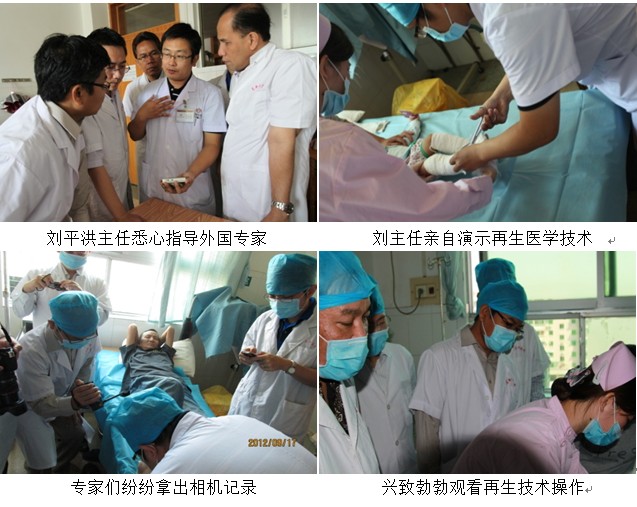 除了觀摩再生醫(yī)學(xué)技術(shù)學(xué)習(xí)和實(shí)際操作,另外,美寶國(guó)際技術(shù)總部與劉主任在科室共同舉辦了中外專家 再生醫(yī)學(xué)討論會(huì)議,中外醫(yī)生分別作了大量關(guān)于大面積深度重度燒傷病人、難愈性糖尿病足創(chuàng)面愈合病人應(yīng)用美寶再生醫(yī)學(xué)技術(shù)治療的演示,包括再生治療前后顯著優(yōu)越于傳統(tǒng)醫(yī)學(xué)治療前后的典型圖片,并全程播放了美寶首席專家王洪生教授微粒皮種植手術(shù)視頻,大面積燒傷患者治療視頻,會(huì)議后外國(guó)專家們同時(shí)針對(duì)多個(gè)傳統(tǒng)醫(yī)學(xué)治療難題與劉平洪主任展開(kāi)熱烈討論,外國(guó)專家們紛紛震驚于美寶再生醫(yī)學(xué)技術(shù)所取的卓越的臨床治療效果,并表示回國(guó)要開(kāi)始將美寶再生醫(yī)學(xué)技術(shù)應(yīng)用于病人,會(huì)議氣氛熱烈,將此次廣州培訓(xùn)活動(dòng)推向一個(gè)高潮。
