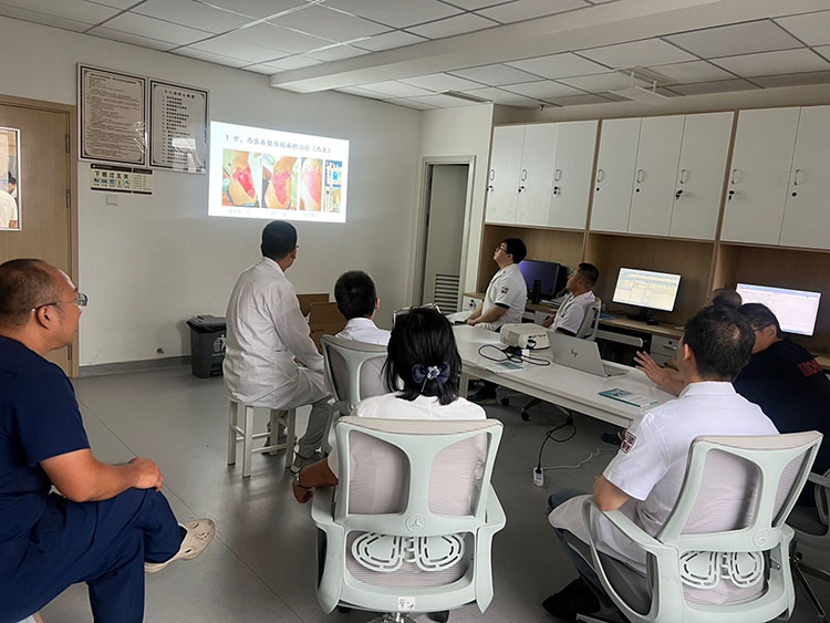 2025年8月5日,中國(guó)中醫(yī)藥高等教育學(xué)會(huì)臨床教育研究會(huì)肛腸分會(huì)常務(wù)理事、北京中西醫(yī)結(jié)合學(xué)會(huì)燒傷專業(yè)委員會(huì)副主任委員、北京中醫(yī)藥學(xué)會(huì)肛腸專業(yè)委員會(huì)委員、《中國(guó)燒傷創(chuàng)瘍雜志》常務(wù)編委張勇,應(yīng)邀來(lái)到遼寧省健康產(chǎn)業(yè)集團(tuán)阜新礦城南醫(yī)院,進(jìn)行再生醫(yī)療技術(shù)學(xué)術(shù)講座,張教授用臨床實(shí)際病例,講述了再生醫(yī)療技術(shù)在多學(xué)科的應(yīng)用的重要性,以及應(yīng)用時(shí)注意事項(xiàng)、應(yīng)用原則等,同時(shí)會(huì)后會(huì)診一例糖尿病足患者,現(xiàn)場(chǎng)進(jìn)行換藥實(shí)際操作,受到全體醫(yī)護(hù)人員的認(rèn)可與好評(píng)!