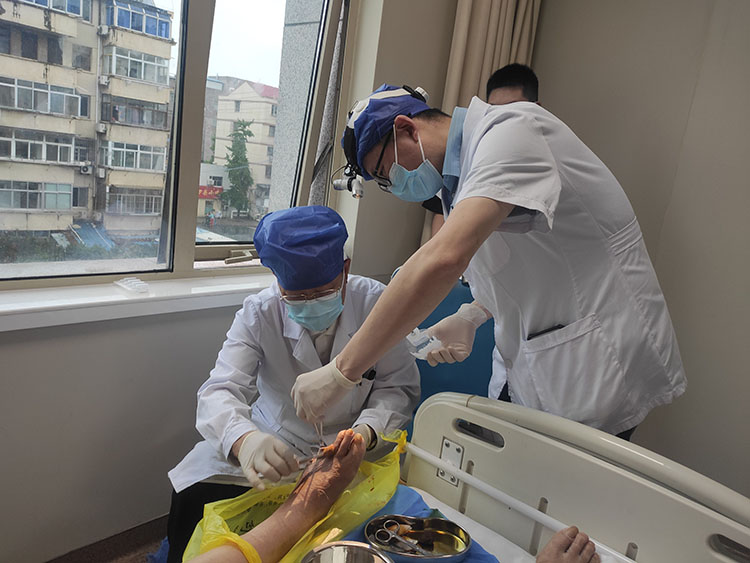 趙瑞慶教授受邀到張家港港成康復(fù)醫(yī)院創(chuàng)面修復(fù)科會(huì)診治療