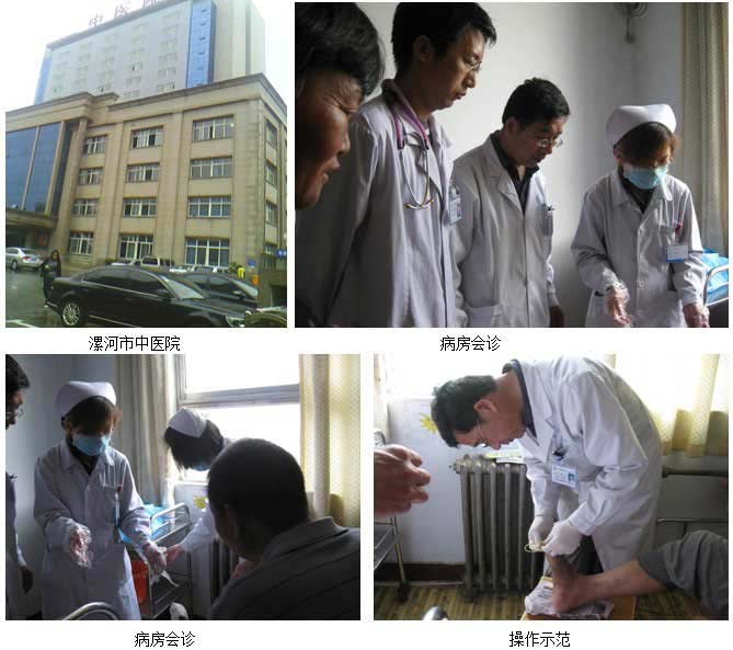 2012間4月23日,中國中西醫(yī)學(xué)會燒傷專業(yè)委員會委員、北京美寶燒傷創(chuàng)瘍研究所臨床部主任陳全喜和區(qū)域經(jīng)理葛小雪應(yīng)邀來到漯河市中醫(yī)院。