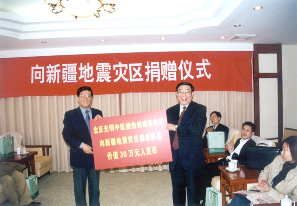 以救死扶傷、造福人類為己任的美寶國(guó)際集團(tuán)在關(guān)鍵時(shí)刻向?yàn)?zāi)區(qū)人民伸出了援助之手,向新疆地震災(zāi)區(qū)當(dāng)?shù)蒯t(yī)院捐贈(zèng)了他們最急需的美寶濕潤(rùn)燒傷膏。2003年3月7日中國(guó)紅十字會(huì)接受了美寶國(guó)際集團(tuán)北京光明中醫(yī)燒傷創(chuàng)瘍研究所捐贈(zèng)的用于燒燙傷救治和治療各種創(chuàng)瘍類疾病的美寶濕潤(rùn)燒傷膏100箱(10,000支),價(jià)值人民幣30萬(wàn)元,準(zhǔn)備將這批藥品用于地震災(zāi)區(qū)民眾的傷病救治。該集團(tuán)同時(shí)表示,救死扶傷同樣是醫(yī)藥企業(yè)的神圣職責(zé)和義務(wù),只要災(zāi)區(qū)需要,他們會(huì)派專業(yè)醫(yī)護(hù)人員協(xié)助當(dāng)?shù)蒯t(yī)院進(jìn)行醫(yī)療救護(hù)工作,為保障災(zāi)區(qū)人民的生命安全和身體健康而盡心竭力!