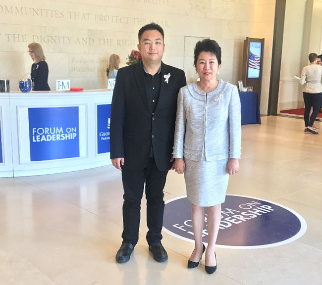 2018年4月18-20日,在美國得克薩斯州達(dá)拉斯市喬治•布什總統(tǒng)中心舉行為期三天的領(lǐng)導(dǎo)力論壇系列活動,前總統(tǒng)喬治•布什及其夫人勞拉•布什,前副總統(tǒng)切尼及其夫人、前國務(wù)卿賴斯女士、前國會議長博納先生以及亞馬遜創(chuàng)始人CEO貝佐斯先生等重要嘉賓出席本次論壇。應(yīng)布什總統(tǒng)中心的邀請,美寶集團(tuán)董事局主席及國際再生醫(yī)學(xué)與創(chuàng)面修復(fù)學(xué)會總裁徐鵬先生、美寶集團(tuán)董事局副主席及美國徐榮祥基金會主席李俐女士也出席了本次論壇,并作為特別嘉賓出席布什總統(tǒng)及切尼副總統(tǒng)各自主辦的小范圍招待會。本次論壇開幕前一天,喬治•布什總統(tǒng)的母親、美國前第一夫人芭芭拉•布什于17日晚間去世,享年92歲。本次論壇于18日依舊如期舉行,只是來賓胸前都別了一個小白絲帶表示悼念。