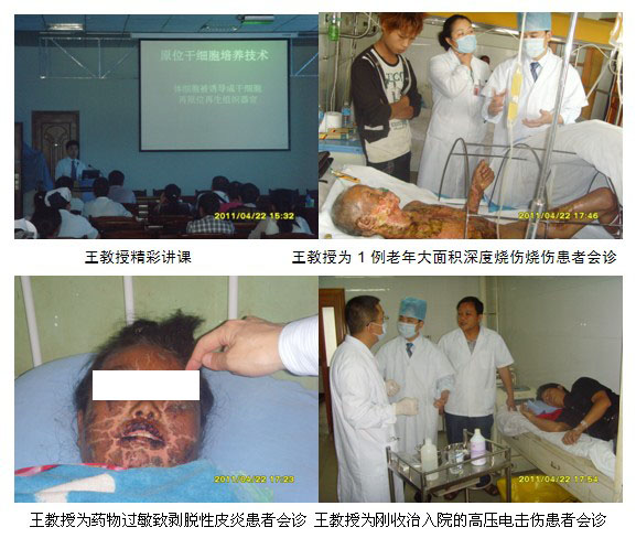 2011年4月22日下午2:30分,應(yīng)云南省德宏州人民醫(yī)院的邀請(qǐng),中國(guó)中西醫(yī)結(jié)合學(xué)會(huì)燒傷常務(wù)委員、北京美寶燒傷創(chuàng)瘍研究所副所長(zhǎng)、中國(guó)燒傷創(chuàng)瘍雜志社副總編輯王洪生教授來(lái)到該院門診大樓6樓會(huì)議室進(jìn)行一場(chǎng)生動(dòng)而詳細(xì)的“再生復(fù)原療法在難治性創(chuàng)瘍創(chuàng)面治療新進(jìn)展”專題學(xué)術(shù)講座。該醫(yī)院胃腸及燒傷整形外科主任楊家成副主任醫(yī)師主持了學(xué)術(shù)講座。