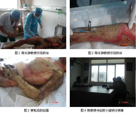 2007年6月5日貴州省安順市基地醫(yī)院收治了四名大面積重度燒傷病人,由于病情嚴(yán)重,情況緊急,該院立即通知了中國中西醫(yī)結(jié)合學(xué)會燒傷專業(yè)委員會陳永翀教授,陳教授聞之情況后,于第二天就從北京趕到了該院,到達(dá)該院后陳教授立即投入到了搶救的工作中去了。
