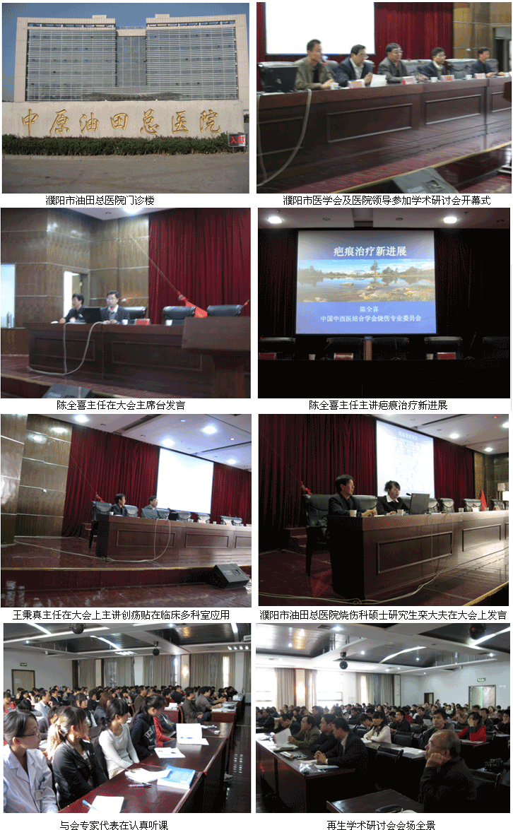 2010年10月16日,我國著名生命科學(xué)家徐榮祥教授創(chuàng)立的再生醫(yī)療新技術(shù)學(xué)術(shù)研討會(huì)在河南省濮陽市油田總醫(yī)院勝利召開,上午8點(diǎn)30分,濮陽市油田總醫(yī)院醫(yī)療處處長耿長雨、濮陽市油田總醫(yī)院院長楊立、市醫(yī)學(xué)會(huì)秘書長王長太,中國創(chuàng)瘍科技研究所陳全喜教授、河南省中西醫(yī)結(jié)合學(xué)會(huì)燒傷專業(yè)委員會(huì)副主任委員王秉真教授、河南鄭大一附院崔正軍教授、中華醫(yī)學(xué)會(huì)河南燒傷專業(yè)委員會(huì)常委、濮陽市油田燒傷科主任醫(yī)師張巨祥等來自河南的濮陽、安陽、焦作、等地區(qū)和中原油田十一所醫(yī)院的專家、教授及專業(yè)人員共176人參加了學(xué)術(shù)會(huì)開幕式,會(huì)議由張巨祥醫(yī)師。