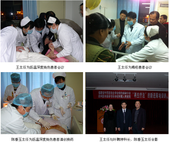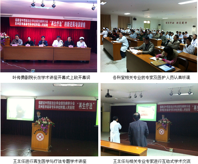 2010年12月30日, 應(yīng)福建省中西醫(yī)結(jié)合學(xué)會(huì)燒傷病學(xué)分會(huì)及應(yīng)泉州醫(yī)學(xué)高等??茖W(xué)校附屬人民醫(yī)院的邀請(qǐng),中國中西醫(yī)結(jié)合學(xué)會(huì)燒傷專業(yè)委員會(huì)常委、中國燒傷創(chuàng)瘍雜志常務(wù)編委、北京美寶燒傷創(chuàng)瘍研究所副所長(zhǎng)、臨床研究部主任兼研究員王洪生教授來到該醫(yī)院進(jìn)行“再生療法在糖尿病足等難愈性創(chuàng)面治療新進(jìn)展”專題講座。