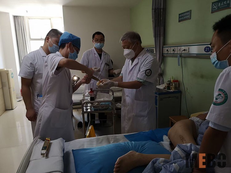 2021年8月30日,應(yīng)益陽市第一中醫(yī)醫(yī)院手足外科(燒傷、慢創(chuàng)治療中心)李俊主任的邀請(qǐng),北京榮祥再生醫(yī)學(xué)研究所副所長、《中國燒傷創(chuàng)瘍雜志》編委金黨軍來到科里會(huì)診一例壓瘡和一例壞死性筋膜炎患者。金教授詳細(xì)講解了再生醫(yī)療技術(shù)清創(chuàng)原則和規(guī)范作用,并親自示范規(guī)范化的換藥流程,就病人后續(xù)的治療也給出合理的建議,金教授也對(duì)科室創(chuàng)面工作的深入開展給予高度贊揚(yáng),希望能帶動(dòng)其它兄弟單位,造福更多創(chuàng)面病人。此次活動(dòng)受到了科室醫(yī)護(hù)人員和病人家屬一致認(rèn)可,大家對(duì)金黨軍教授的悉心指導(dǎo)表示感謝。