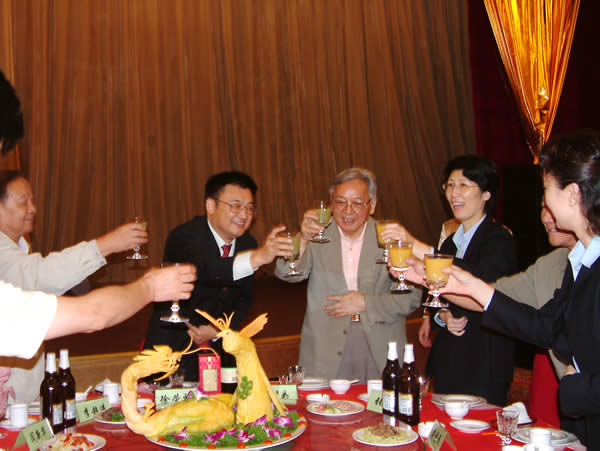 晚上,集團(tuán)為慶祝8.16集團(tuán)日和集團(tuán)喬遷之喜,在華都大飯店舉行了盛大的慶祝酒會(huì),并邀請了原外國專家局局長馬俊如、原衛(wèi)生部藥監(jiān)局局長李超進(jìn)、原衛(wèi)生部藥監(jiān)局副局長粟福民、中新社副總編夏春平、科技日報(bào)副總編閻新華等幾位嘉賓到會(huì),會(huì)前徐總發(fā)表了簡短的講話,并誠摯感謝了在燒傷皮膚再生技術(shù)發(fā)展過程中給予支持和幫助的幾位老領(lǐng)導(dǎo)。幾位領(lǐng)導(dǎo)和嘉賓也發(fā)表了精彩的感言,大家紛紛贊揚(yáng)了徐總所取得的驕人成果和高尚的人格魅力,并堅(jiān)信美寶集團(tuán)在以人類健康為宗旨的發(fā)展道路上會(huì)越走越遠(yuǎn)。酒會(huì)在熱鬧祥和的氣氛中進(jìn)行。