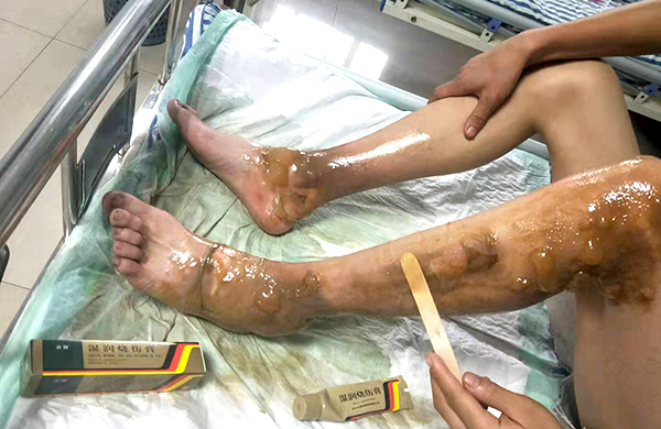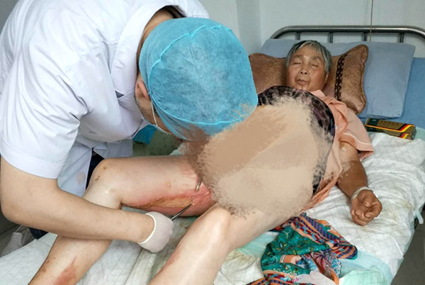 地震核心區(qū)宜賓礦山急救醫(yī)院外科主任、四川省中西醫(yī)結(jié)合學(xué)會(huì)燒傷與創(chuàng)面修復(fù)專委會(huì)常委繆浩主任應(yīng)用再生醫(yī)療技術(shù)救治受傷群眾。