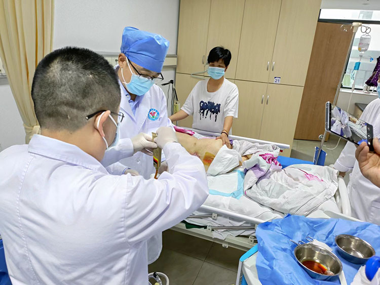 2023年4月8日,應南通市通州區(qū)第三人民醫(yī)院之邀,再生醫(yī)學知名專家、《中國燒傷創(chuàng)瘍雜志》常務編委趙瑞慶主任在該院會診了2例患者(下肢骨折內固定術后皮膚感染1例、左手背皮膚外傷組織缺損1例),并針對性地對科室骨干進行了“再生技術治療急慢性創(chuàng)面修復”的培訓,使大家在開拓視野的同時感受到理論與臨床實踐相結合的益處,得到醫(yī)護人員的一致好評!