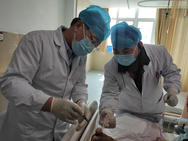 4月6日,應科左后旗醫(yī)院邀請,北京宣武中醫(yī)院張勇主任來到在美麗的科爾沁大草原,在醫(yī)院骨外科進行再生醫(yī)療技術學術交流活動。學術交流得到了醫(yī)院領導班子大力支持,會議由主管院長張愛民院長主持??剖抑魅?、醫(yī)生對再生醫(yī)療技術臨床療效給予高度認可和評價!學術交流后,張勇主任和醫(yī)院領導一起到科室,為幾例慢創(chuàng)病人會診和指導,張主任親自操作示范換藥,講解規(guī)范換藥細節(jié),旨在提升慢創(chuàng)救治能力,充分發(fā)揮再生醫(yī)療技術創(chuàng)面修復的示范引領作用,最大限度降低慢創(chuàng)患者的死亡率和致殘率,確保慢性患者得到高效的救治。