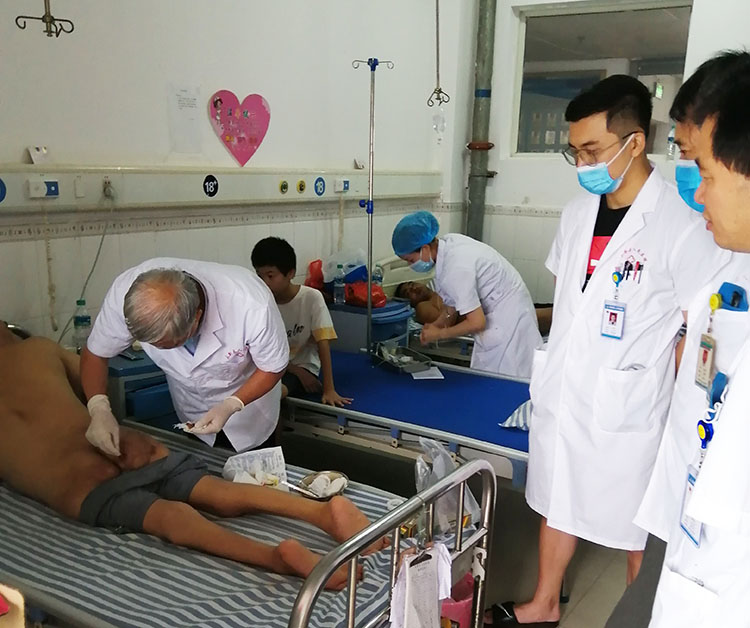 8月20日,享受國(guó)務(wù)院特殊津貼專家、中國(guó)中西醫(yī)結(jié)合燒傷專業(yè)委員會(huì)顧問(wèn)、中國(guó)研究型醫(yī)院學(xué)會(huì)創(chuàng)面防治與損傷組織修復(fù)專業(yè)委員會(huì)委員、中國(guó)中西醫(yī)結(jié)合學(xué)會(huì)再生醫(yī)療技術(shù)委員會(huì)創(chuàng)瘍學(xué)組首席專家、《中國(guó)燒傷創(chuàng)瘍雜志》常務(wù)編委、成都市郫都區(qū)人民醫(yī)院燒傷創(chuàng)瘍科學(xué)術(shù)帶頭人付子俊教授應(yīng)貴州威寧縣人民醫(yī)院的邀請(qǐng),到該院會(huì)診兩名燒傷病人,并對(duì)該院普外科醫(yī)護(hù)人員進(jìn)行再生醫(yī)療技術(shù)規(guī)范化應(yīng)用培訓(xùn)。