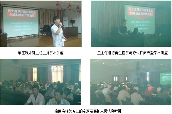 2011年9月8日,中國燒傷創(chuàng)瘍雜志副總編輯、中國中西醫(yī)結(jié)合學(xué)會燒傷專業(yè)委員會常委兼秘書、北京燒傷創(chuàng)瘍研究所副所長、臨床研究部主任王洪生研究員應(yīng)修文縣人民醫(yī)院的邀請,來到該院作了“再生復(fù)原療法在燒傷及難治性創(chuàng)傷潰瘍創(chuàng)面治療新進(jìn)展”學(xué)術(shù)培訓(xùn)。