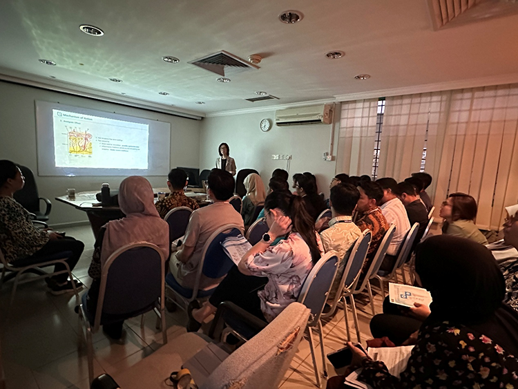 當日下午,美寶團隊南下馬六甲的仁愛醫(yī)院(Mahkota Medical Centre)迎來藥劑師專場培訓。作為南馬地區(qū)最大的私立醫(yī)療機構(gòu)之一,該院積極響應(yīng)此次培訓,因場地限制,主辦方同步開放線上參會通道,除藥劑師外吸引超20位院內(nèi)多科醫(yī)護人員參與。課程圍繞再生類藥品的作用機制、用藥管理與患者教育展開,推動“藥學服務(wù)+療效管理”理念落地。