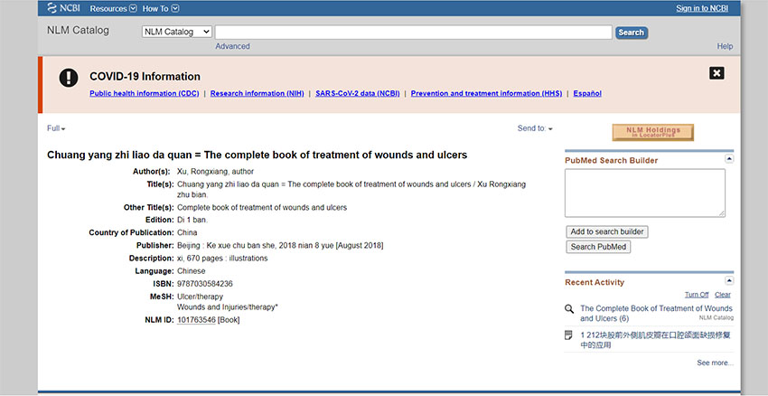 《創(chuàng)瘍治療大全》被美國國家醫(yī)學圖書館收錄