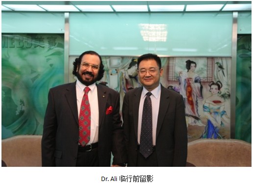 Dr. Ali十幾年來一直使用美寶技術及配套治療了許許多多的燒傷患者并在他所參加的各個會議上宣傳美寶科學技術。此次來訪期間,Dr. Ali還參加了在北京召開的第二屆歐洲整形會議,并在會議上做美寶的演講,反響十分強烈。他甚至用美寶的養(yǎng)生產(chǎn)品解決了很多人多年困擾的難題,如這次來訪會談間,他提起一個親眼鑒證的神奇的案例,在他的建議下,他的一個不孕癥朋友服用了美寶膠囊,八個月后發(fā)現(xiàn)居然不需要試管受精就成功自然受孕了。每當他談起美寶科學技術和產(chǎn)品的神奇時總是滿臉興奮的神情溢于言表。