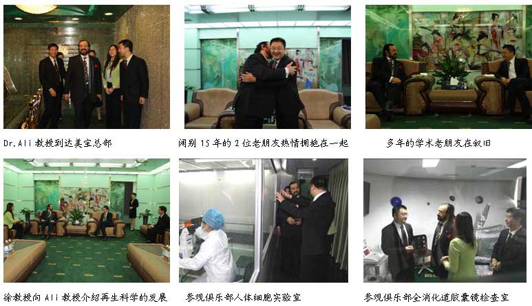 2009年11月12日上午10時(shí),Dr.Ali教授應(yīng)邀來到了人體生命再生科學(xué)發(fā)源地——美寶國際集團(tuán)總部參觀考察,徐榮祥教授在貴賓室熱情接見了這位多年的學(xué)術(shù)老朋友。Dr.Ali教授是再生醫(yī)學(xué)的忠誠追隨者和實(shí)踐家,他自1996年與燒傷再生醫(yī)學(xué)技術(shù)創(chuàng)始人徐榮祥教授結(jié)識(shí),開始致力于燒傷再生醫(yī)療技術(shù)的臨床研究與應(yīng)用,成功運(yùn)用該技術(shù)救治了大量中小面積的燒傷患者和一些嚴(yán)重的創(chuàng)瘍患者,取得了良好的治療效果,先后在國際專業(yè)期刊上先后發(fā)表了多篇有關(guān)燒傷再生醫(yī)學(xué)的論文,在燒傷再生醫(yī)學(xué)領(lǐng)域具有較深的造詣,在阿聯(lián)酋和中東具有較高的學(xué)術(shù)地位和影響力。會(huì)面期間,徐教授與Dr. Ali教授一起追憶了燒傷皮膚再生研究的發(fā)展歷史,徐教授向其介紹了生命再生醫(yī)學(xué)與科學(xué)近年來在燒傷皮膚再生以及整個(gè)人體再生復(fù)原科學(xué)領(lǐng)域的喜人進(jìn)展與成就,共同暢談了再生醫(yī)學(xué)與科學(xué)的未來發(fā)展,在科學(xué)和學(xué)術(shù)的高度上達(dá)成了共識(shí)。會(huì)談結(jié)束后,在徐教授的親自陪同下,Dr. Ali教授饒有興致地參觀了美寶人體再生復(fù)原俱樂部、人體細(xì)胞研究所、全消化道膠囊鏡等。中國燒傷創(chuàng)瘍科技中心臨床部陳永翀教授在美寶集團(tuán)總部多功能廳用多媒體生動(dòng)地向Dr. Ali教授展示了再生醫(yī)學(xué)在胃腸組織器官再生、斷指再生和治療癌癥方面取得的新進(jìn)展。整個(gè)訪問、參觀過程中,Dr. Ali教授對(duì)再生醫(yī)學(xué)、科學(xué)取得的新成就表示出濃厚的興趣和完全的折服,并不止一次感嘆:從與徐教授結(jié)識(shí)的第一天起,對(duì)徐教授提出的關(guān)于皮膚再生、以及其他方面的新觀念、新理論和臨床結(jié)果都堅(jiān)信不疑,盡管當(dāng)時(shí)一些關(guān)于機(jī)理的問題還沒有定論,但他始終相信那只是時(shí)間的問題。今天能夠見到徐教授,他不僅得到了以前遺留問題的最終答案,并看到了再生科學(xué)的飛速發(fā)展,更加堅(jiān)定了他為該科學(xué)獻(xiàn)身的決心。期間,國際部孫霞總經(jīng)理也熱情接見了Dr.Ali教授,并就下一步阿聯(lián)酋及中東地區(qū)的再生醫(yī)學(xué)科學(xué)的學(xué)術(shù)發(fā)展與醫(yī)療開發(fā)工作進(jìn)行了認(rèn)真的商談,具體討論了下階段的發(fā)展計(jì)劃。