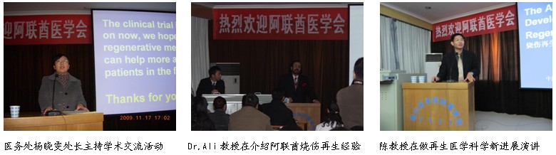 2009年11月11日至11月18日,阿拉伯聯(lián)合酋長國(阿聯(lián)酋)醫(yī)師學(xué)會(huì)主席、整形外科學(xué)會(huì)主席、迪拜醫(yī)學(xué)院碩士研究生導(dǎo)師Dr. Ali Al Numairy 教授應(yīng)第37屆北京國際微創(chuàng)外科大會(huì)和中國中西醫(yī)結(jié)合學(xué)會(huì)燒傷專業(yè)委員會(huì)的邀請(qǐng),來到中國進(jìn)行為期一周的再生醫(yī)學(xué)學(xué)術(shù)演講、經(jīng)驗(yàn)交流和考察、學(xué)習(xí)大面積深度燒傷再生治療的學(xué)術(shù)之旅。在短短的一周時(shí)間里,Dr. Ali Al Numairy有幸再次見到了中國青年科學(xué)家、燒傷再生醫(yī)學(xué)與人體生命再生科學(xué)的創(chuàng)立人徐榮祥教授,雙方進(jìn)行了廣泛的再生科學(xué)領(lǐng)域的交流,還出席了在北京協(xié)和醫(yī)院舉辦的2009年第37屆北京國際微創(chuàng)外科大會(huì),并在會(huì)議上進(jìn)行了燒傷濕潤暴露療法專題演講,引起了全場(chǎng)轟動(dòng)。隨后,Dr. Ali Al Numairy教授又趕到中國燒傷創(chuàng)瘍泰山醫(yī)院——泰山醫(yī)學(xué)院附屬醫(yī)院燒傷科,參觀考察大面積深度燒傷的皮膚再生治療技術(shù)并進(jìn)行了深入的學(xué)術(shù)交流,整個(gè)行程內(nèi)容豐富、精彩紛呈、收獲頗豐!