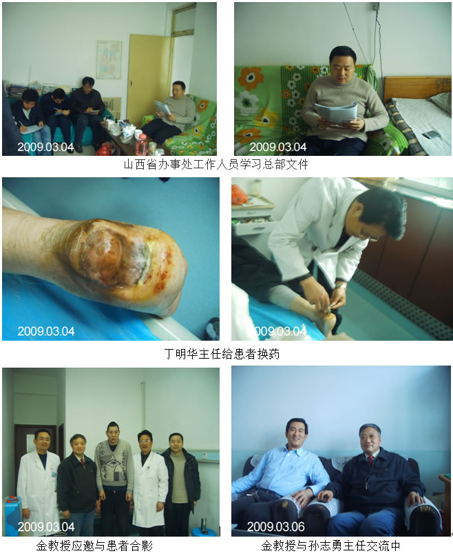 2009年3月6日和3月7日??〗芎徒鸾淌诜謩e走訪了長治潞城市人民醫(yī)院、長治長鋼醫(yī)院、晉城市人民醫(yī)院、晉城市長城醫(yī)院,就再生醫(yī)療技術(shù)的臨床應(yīng)用及其新產(chǎn)品速愈貼的推廣分別與科主任進(jìn)行了交流,并初步達(dá)到共識,長鋼醫(yī)院在近期內(nèi)可以實(shí)現(xiàn)臨床應(yīng)用,并與長城醫(yī)院馮院長初步計(jì)劃于3月份在長城醫(yī)院舉辦一次較大規(guī)模全晉城市基層醫(yī)療工作者的培訓(xùn)。