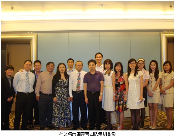9月13日上午,孫總一行應(yīng)泰國DKSH公司高層邀請來前往拜訪,聽取DKSH公司市場總監(jiān)Ms.Kasinca關(guān)于泰國美寶的市場規(guī)劃。DKSH公司MC和OTC團隊產(chǎn)品經(jīng)理Mr.Boonlert和Mr.Tanut分別介紹了2011年截至目前美寶泰國的市場計劃執(zhí)行情況及2012的市場發(fā)展計劃。 針對對方提出的目標(biāo)和計劃,孫總提出了寶貴的意見和建議,并強調(diào)后續(xù)的工作雙方團隊務(wù)必更加緊密合作,切實有效地執(zhí)行落實各項計劃。