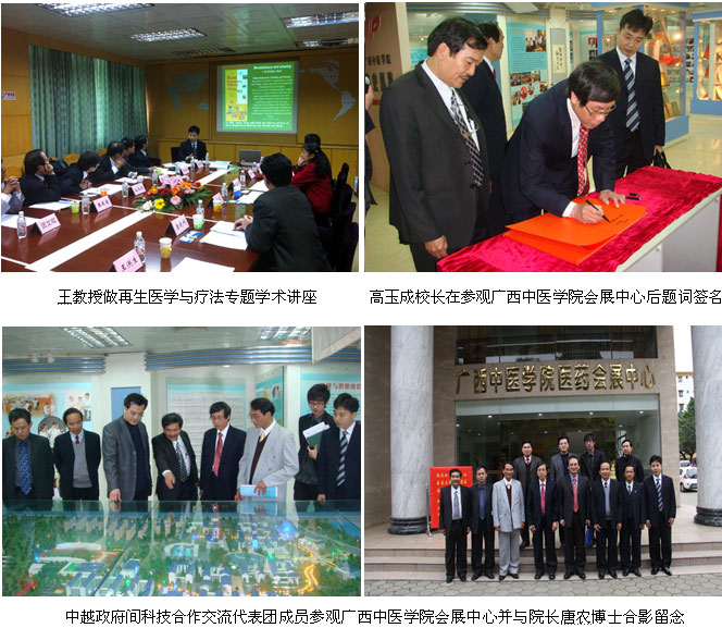 為盡快啟動中越政府間科技交流合作項目,“中越政府間科技合作聯委會第八次會議短期交流項目暨中越燒傷傳統(tǒng)診療技術的交流與合作”洽談會于2011年3月22日下午3時在在廣西中醫(yī)學院會展中心7樓第三會議室舉行,出席洽談會的中越雙方代表分別是以廣西中醫(yī)學院院長唐農博士,科技處處長、項目負責人唐乾利教授,國際交流與合作處處長蔣基昌副教授、廣西中醫(yī)學院教務處長辛寧教授、廣西中醫(yī)學院科技處藤建北博士等領導和項目組其他成員組成的中方代表團及以越南順化醫(yī)藥大學校長兼附屬醫(yī)院院長高玉成教授,順化醫(yī)藥大學書記兼副校長陳友當教授,順化醫(yī)藥大學附屬醫(yī)院副院長、副書記阮生松博士,順化醫(yī)藥大學工會主席兼藥理部副主任陳文和博士,順化醫(yī)藥大學傳統(tǒng)醫(yī)學部副主任團文翰教授,順化醫(yī)藥大學微生物部副主任陳停平教授一行6人組成的越方代表團,作為知識產權單位的代表,中國中西醫(yī)結合燒傷專業(yè)委員會常委、中國燒傷創(chuàng)瘍雜志副總編輯、北京美寶燒傷創(chuàng)瘍研究所副所長、臨床研究部主任王洪生教授、美寶國際集團技術推廣專員張恩滔應邀出席了洽談會。