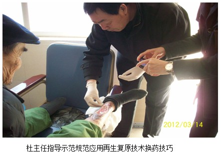 2012年3月13日~14日應(yīng)大外科金瑞主任和醫(yī)務(wù)處方衛(wèi)東主任的邀請(qǐng),中國中西醫(yī)結(jié)合學(xué)會(huì)燒傷專業(yè)委員會(huì)常委、北京美寶燒傷創(chuàng)瘍研究所臨床部主任、燒傷創(chuàng)瘍專家杜福勤主任與學(xué)會(huì)駐宣城市吳崇巍同志應(yīng)邀為中心醫(yī)院外科、糖尿病科、骨科、腫瘤??谱髁恕霸偕鷱?fù)原技術(shù)在燒傷創(chuàng)傷潰瘍創(chuàng)面的治療新進(jìn)展”學(xué)術(shù)講座。下午15:00講座開始,大外科金瑞主任主持,醫(yī)生護(hù)士50余人參加了學(xué)習(xí),院醫(yī)務(wù)處方衛(wèi)東主任、科教科劉朝明主任、普外科姜主任等參加講座學(xué)習(xí),杜主任利用多媒體圖文并茂,通俗易懂的進(jìn)行了講解,講座進(jìn)行了兩個(gè)多小時(shí),講座結(jié)束時(shí)杜主任和姜主任就燒傷創(chuàng)面、創(chuàng)傷創(chuàng)面、潰瘍創(chuàng)面臨床有關(guān)創(chuàng)面治療進(jìn)行了交流,回答了臨床遇到的問題,并和丁昊醫(yī)師多次示范應(yīng)用MEBO燒傷膏和創(chuàng)瘍貼為下肢潰瘍患者規(guī)范換藥,為推廣再生復(fù)原醫(yī)療技術(shù)奠定了良好基礎(chǔ),達(dá)到了深入推廣再生復(fù)原醫(yī)療技術(shù)地目的,深受醫(yī)護(hù)人員的歡迎。