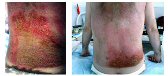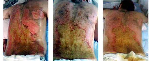 就這樣,丹尼爾留在汕頭海軍醫(yī)院燒傷創(chuàng)瘍治療中心接受治療。一位燒傷面積大約12%(淺II度4%、深I(lǐng)I度5%、淺III度3%)的嚴(yán)重?zé)齻颊撸?jīng)全體醫(yī)務(wù)人員的精心治療護(hù)理和中國(guó)燒傷創(chuàng)瘍科技中心臨床總部的陳永翀主任的多次電話會(huì)診和指導(dǎo),丹尼爾順利而無(wú)痛苦的度過(guò)了皮膚燒傷治療的滲出、液化和再生修復(fù)期。由于得到及時(shí)有效的治療,背部的深Ⅱ度創(chuàng)面在住院后的25天就長(zhǎng)出跟他以前一模一樣的皮膚(生理性愈合),腰部的淺Ⅲ度創(chuàng)面也在接受治療后的第45天無(wú)植皮、無(wú)疤痕愈合(再生修復(fù))?,F(xiàn)在背的皮膚彈性良好,受傷前有毛的部位現(xiàn)在也恢復(fù)了原狀。再一次證明燒傷皮膚再生醫(yī)學(xué)技術(shù)不僅適合黃種人,而且對(duì)白種人的深度皮膚燒傷同樣是非常有效的。