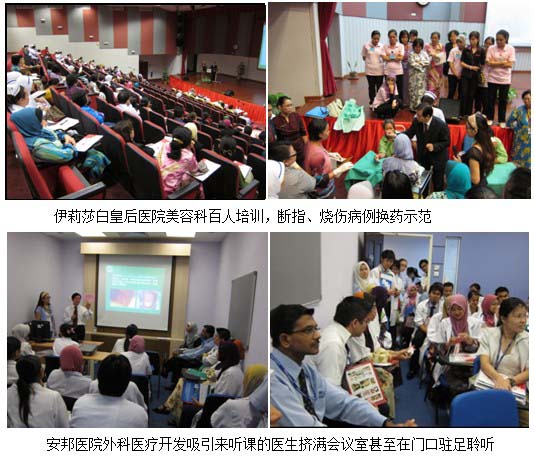 本次醫(yī)療開發(fā)遍布了整個(gè)東馬和西馬近20家大型州級(jí)政府中心醫(yī)院,覆蓋科室分布為骨科、美容、普外、急診、燒傷、婦產(chǎn)、口腔科等,組織舉辦培訓(xùn)學(xué)習(xí)班數(shù)十余場(chǎng),培訓(xùn)醫(yī)護(hù)人員近千名,會(huì)診病例十余次包括糖尿病足潰瘍、下肢靜脈潰瘍、剖腹產(chǎn)手術(shù)切口感染、糖尿病下頜面部潰瘍等。此行的醫(yī)療開發(fā)旨在介紹闡述再生醫(yī)學(xué)科學(xué)基本原理,樹立醫(yī)生的治療新理念,糾正單純換藥的概念,規(guī)范了技術(shù)操作流程及原則,解決了馬來醫(yī)生理論概念及臨床應(yīng)用等問題及質(zhì)疑,樹立并增強(qiáng)了醫(yī)生的信心,為今后的大范圍應(yīng)用打下來堅(jiān)實(shí)的基礎(chǔ)。