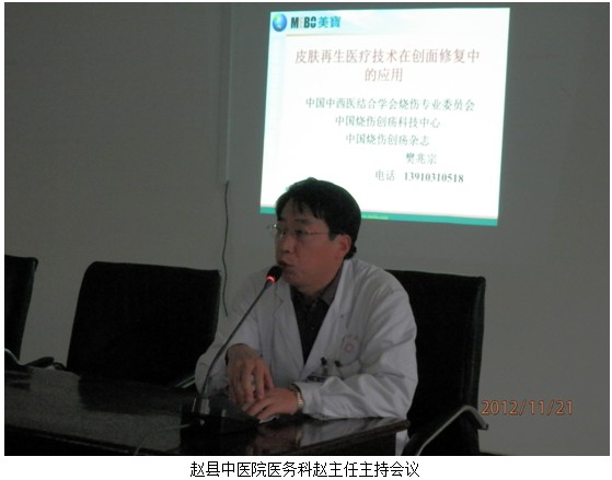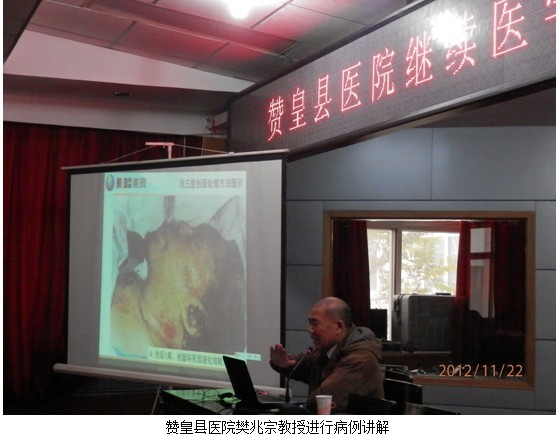 2012年11月21日至22日,中國中西醫(yī)結(jié)合學(xué)會燒傷專業(yè)委員會委員、《中國燒傷創(chuàng)瘍雜志》編委樊兆宗教授應(yīng)邀分別于河北省趙縣中醫(yī)院和河北省贊皇縣醫(yī)院進(jìn)行授課。