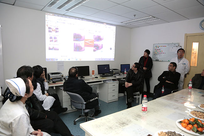 宣武中醫(yī)院李副院長、科教科主任和外科主任張勇教授歡迎外賓的到來,張勇主任首先介紹了徐榮祥教授與宣武醫(yī)院深厚的歷史淵源。早在1987年,徐榮祥教授就在該院普及推廣應用再生技術,治療了大量的燒傷創(chuàng)瘍患者。多年來,宣武中醫(yī)院秉承徐教授的教誨,繼續(xù)規(guī)范的應用再生技術,治療了大量的燒傷創(chuàng)瘍患者,并多次獲得獎項。張主任通過病理圖片等資料向外賓介紹了成功應用再生技術的病例。隨后在肖摩教授的陪同下來到燒傷創(chuàng)瘍病房,各位專家認證觀摩了正在應用再生技術治療的糖尿病足、壓瘡等患者,兩位已經痊愈的患者向外賓介紹了治療的經過及對醫(yī)院采用新技術治療疑難疾患的感受。哈佛的專家連連盛贊北京宣武中醫(yī)院應用再生技術取得顯著療效和成果。